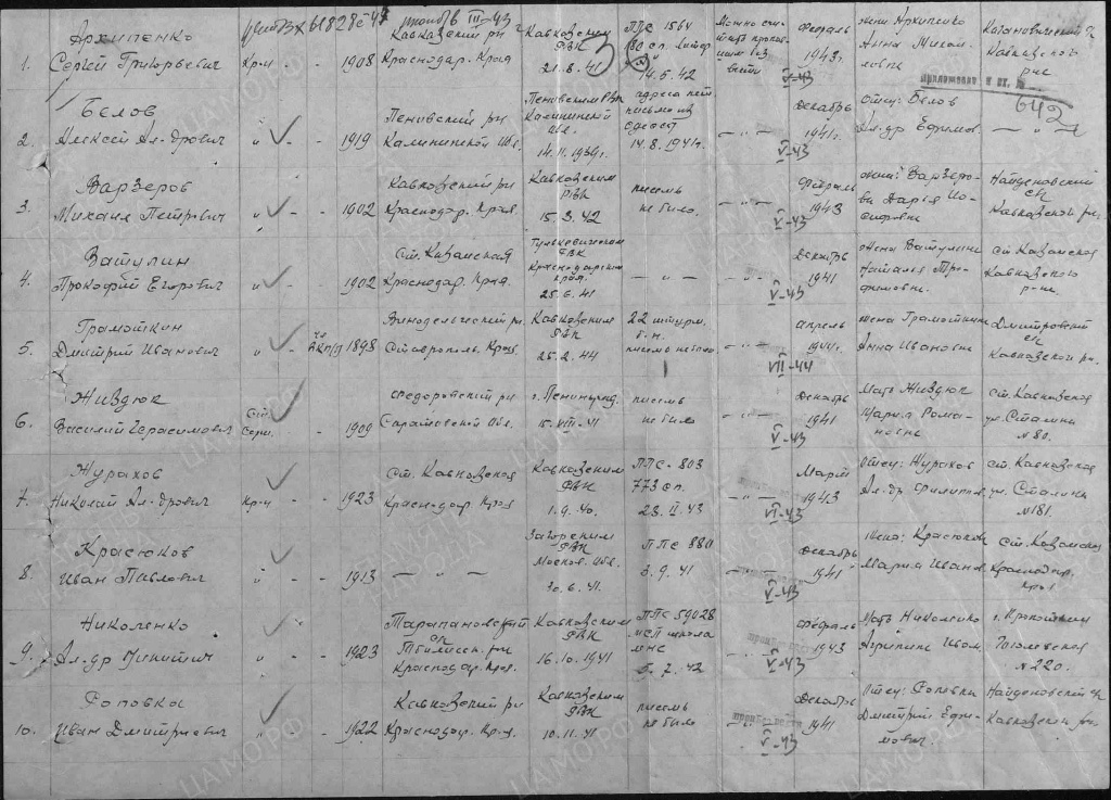 Дата и место призыва: 01.09.1940 Кавказский РВК, Краснодарский край, Кавказский р-н
